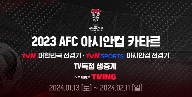 아시안컵 중계는 tvN, tvN SPORTS, TVING, 쿠팡플레이에서 시청이 가능합니다.