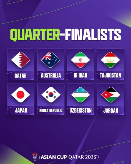 - 8강 진출국가 : 대한민국, 우즈베키스탄, 요르단, 카타르, 호주, 이란, 타지키스탄, 일본
